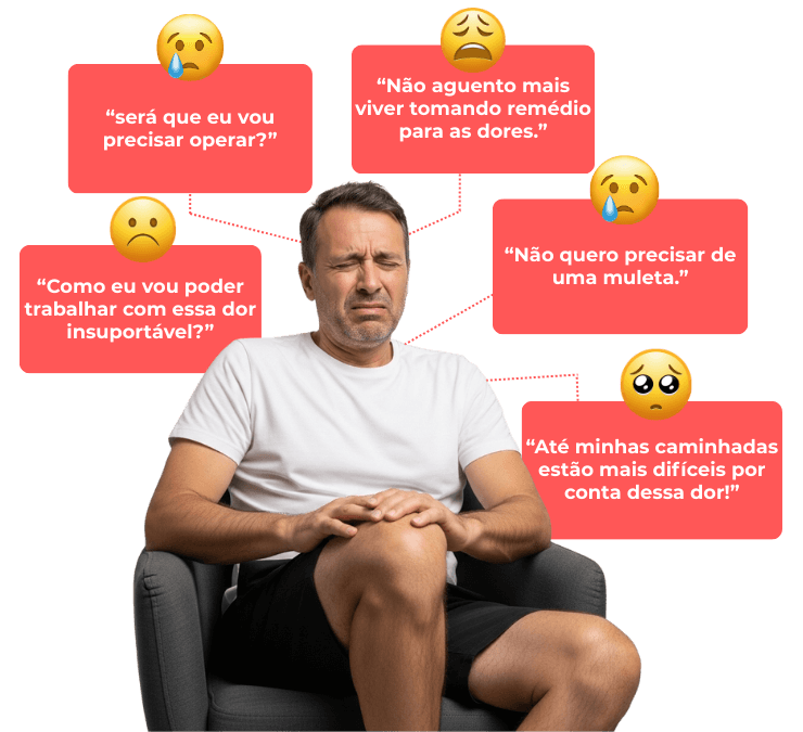 A cada dia que passa, o seu joelho piora e você sofre com os seguintes pensamentos: